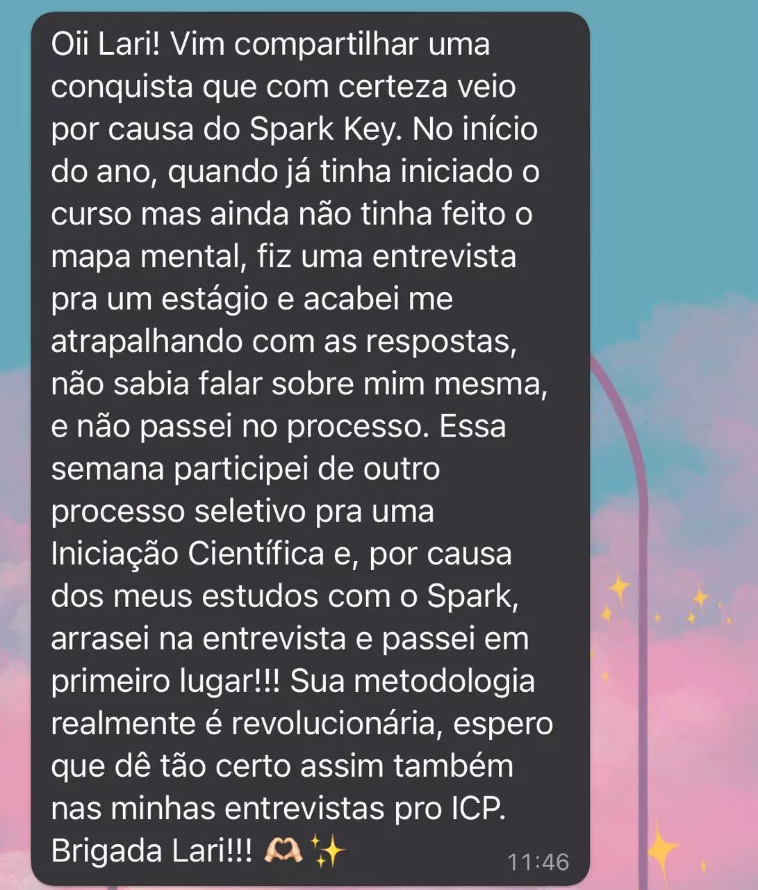 O Spark Key foi criado para ser um curso direto, prático e eficiente, para você conseguir absorver o conteúdo e aplicar as estratégias certas, mesmo com uma rotina corrida!