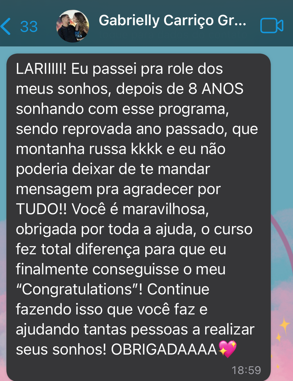* Aulas bônus ao vivo com convidados (incluindo professoras de inglês, e sorteio para simulação de entrevista com a Lari ao vivo!).